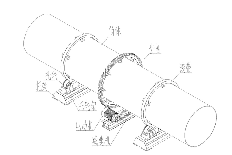 本機是將粉狀原料加工成顆粒的一種設備,適用于有機無機復混肥等高含氮量產(chǎn)品。結構 本機由機架、滾筒、內