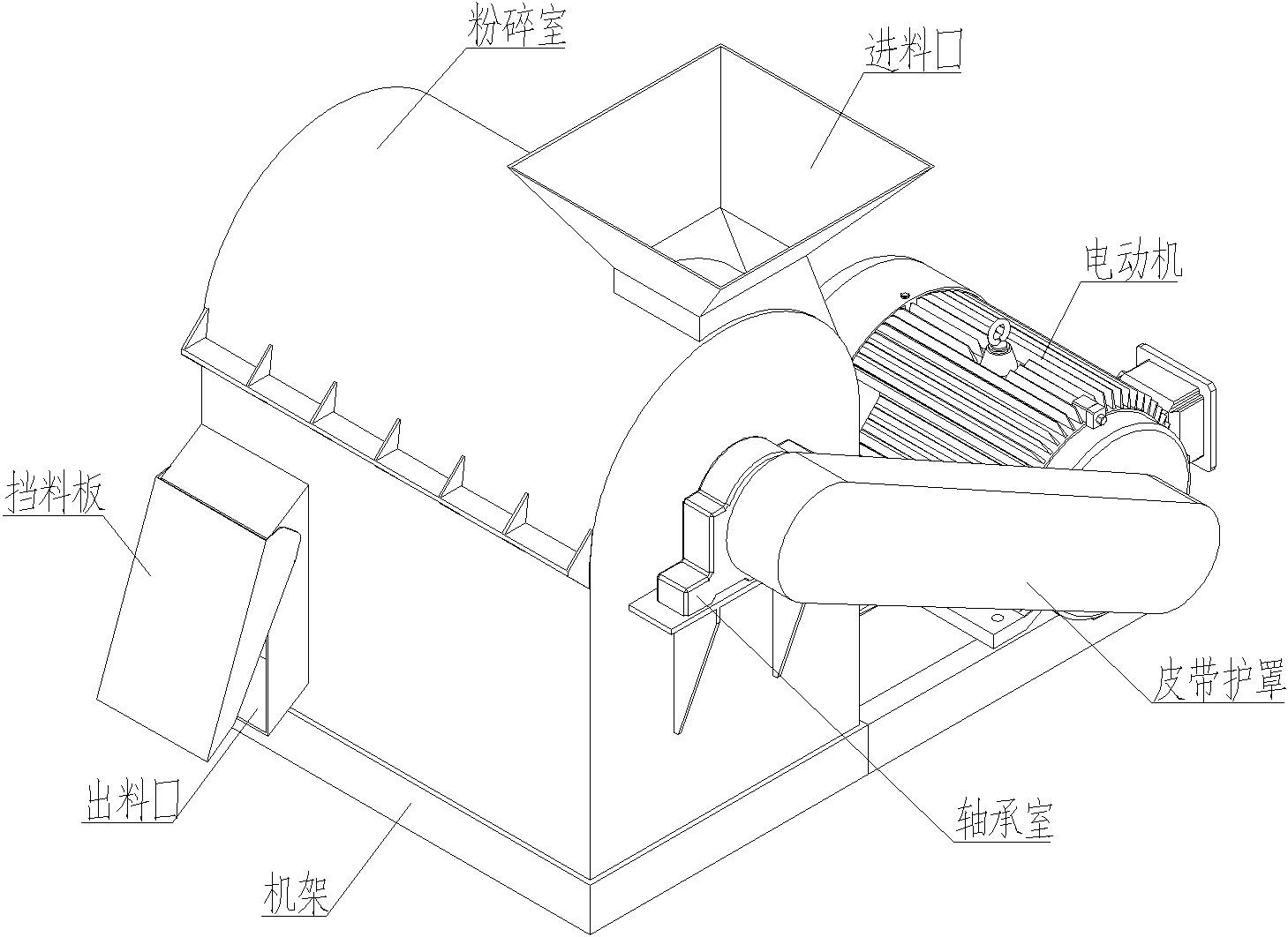 1.半濕物料粉碎機通過轉(zhuǎn)子高速旋轉(zhuǎn),使物料被刀片高速撞擊形成細(xì)小的顆粒,最后通過出料口直接卸出。