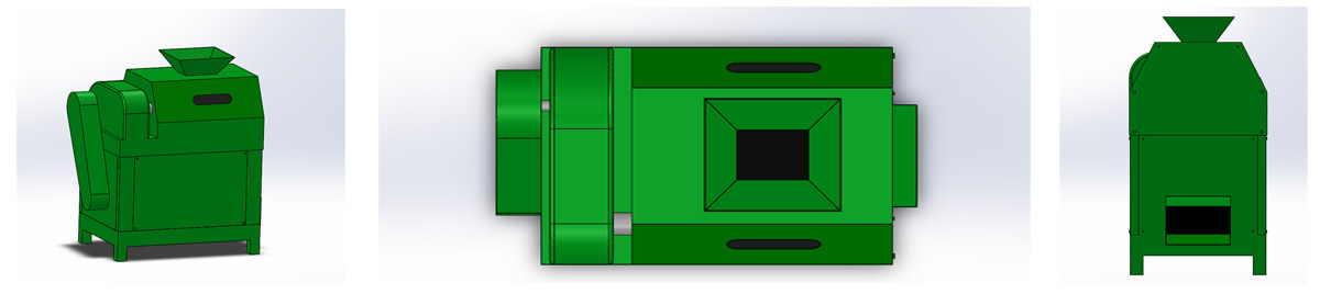 2.傳動(dòng)聯(lián)接部分:本機(jī)由電動(dòng)機(jī)驅(qū)動(dòng)皮帶輪、三角帶、減速機(jī)傳動(dòng),使機(jī)頭工作。另有鏈輪、鏈條組成傳動(dòng)鏈傳遞給破碎分離工作部分。其中減速機(jī)與機(jī)頭工作部分,用尼龍柱銷式聯(lián)軸器傳遞驅(qū)動(dòng)。