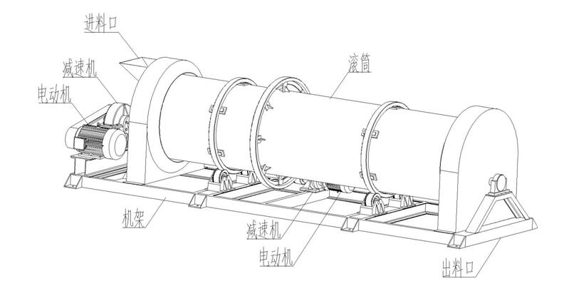 本機是將粉狀原料加工成顆粒的一種設備,適用于有機無機復混肥等高含氮量產品。 結構:本機由機架、滾筒、
