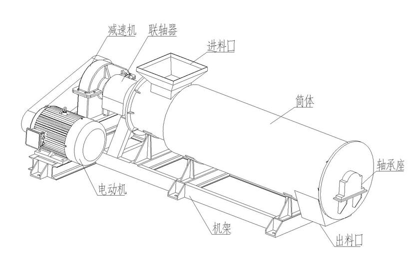 本機(jī)是將粉狀原料加工成顆粒的一種設(shè)備,適用于有機(jī)無(wú)機(jī)復(fù)混肥等高含氮量產(chǎn)品。 結(jié)構(gòu):本機(jī)由機(jī)架、滾筒、